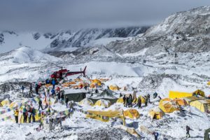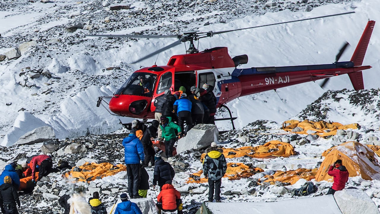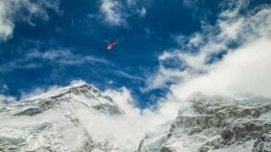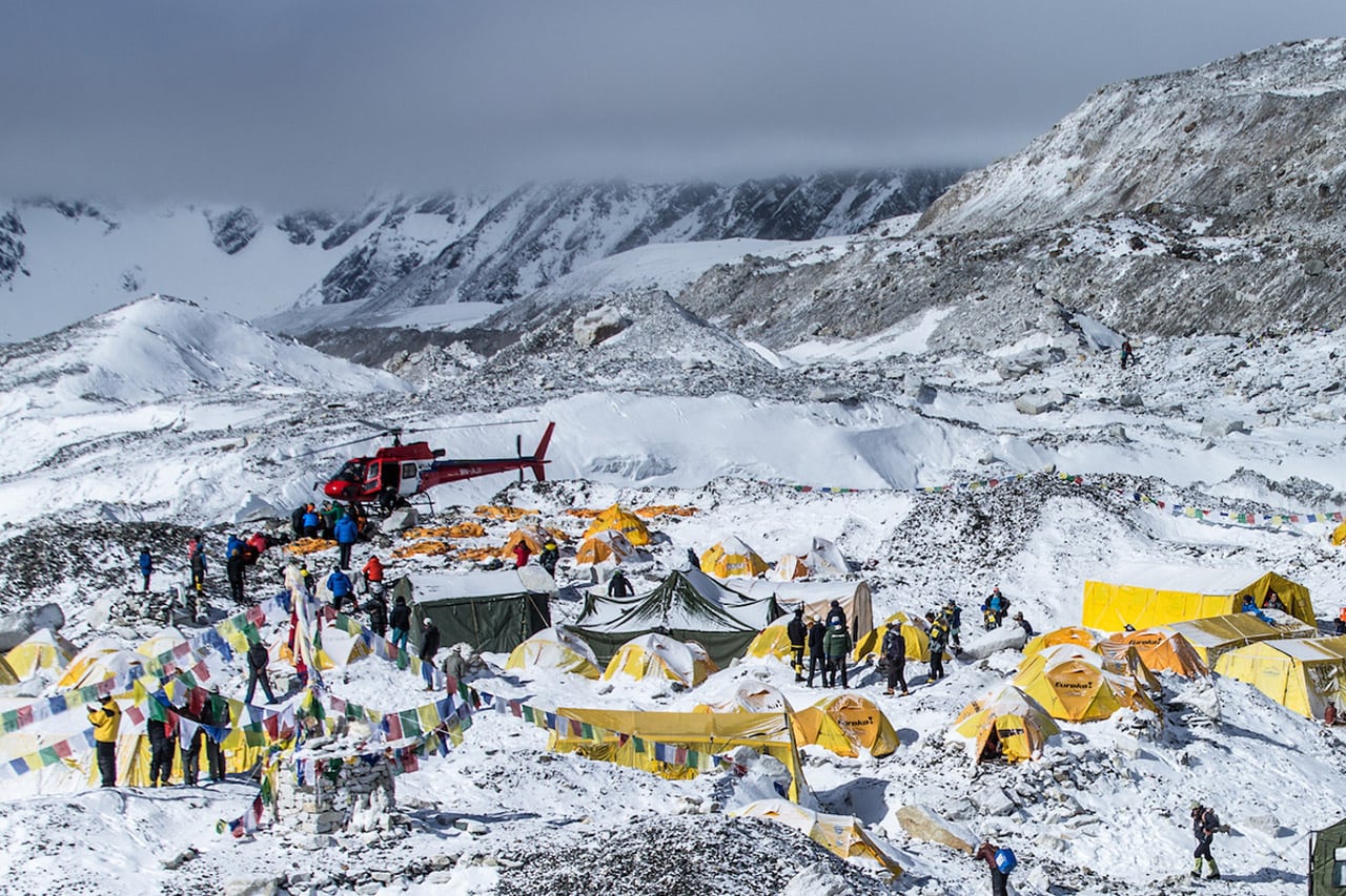 Helicopters high above the Khumbu Icefall and Everest 2015. An incredible team of doctors and emergency responders saved dozens of lives. Heroes at every turn. Bravery every step of the way.
