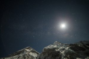 Lobuche peak at night under a full moon on the way to Everest t basecamp. Looking forward to shooting timelapse just beneath the summit.