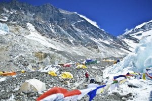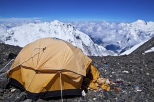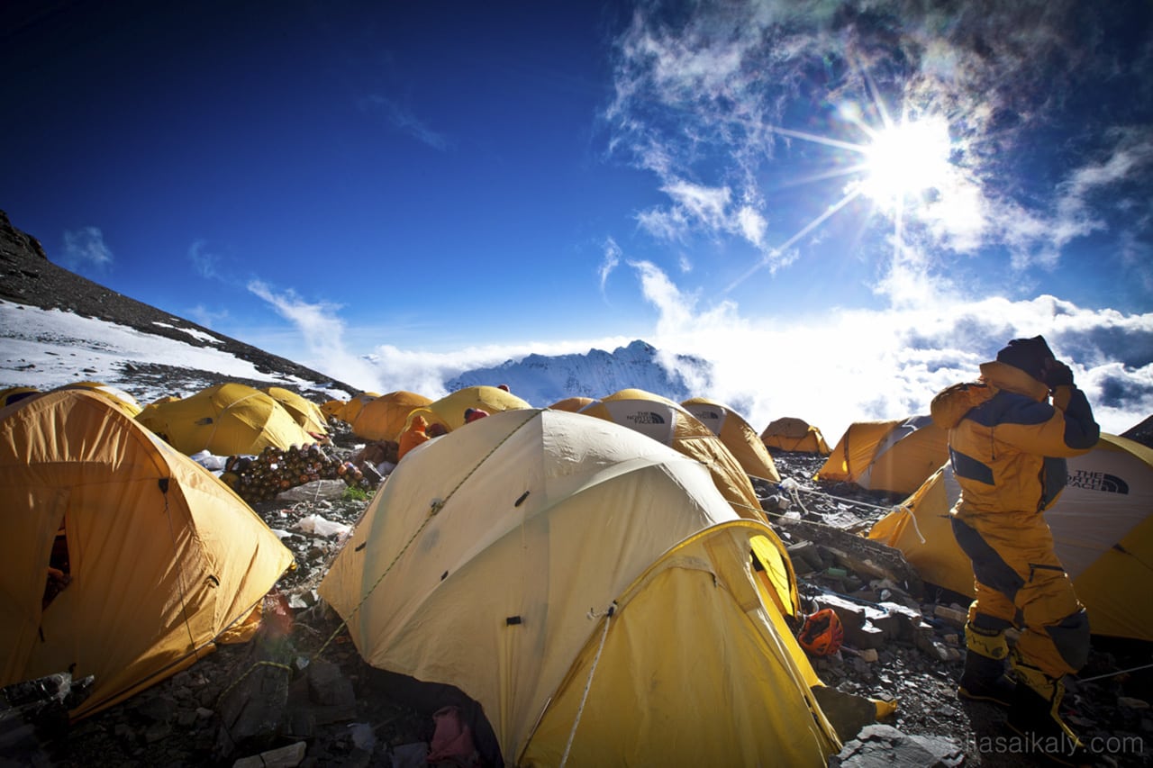 The sound of violent wind tearing away at the fine yellow walls of my North Face tent forces me awake. I’m alive! My super-hydration strategy seems to have worked, and my choice not to alarm anyone with my condition seems to have paid off. The guides have enough to worry about with our three-man team of Arab climbers. These boys are here living their dream, and I’m here to document the realization of that dream. I will not be a liability. I’ve seen them to the summit of Mt. Elbrus and Mt. Aconcagua, and now it’s time to see them to the summit of the tallest mountain on Earth. It’s game time. Time to flip the switch.