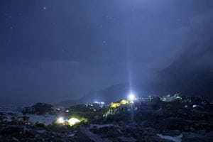 At 10 p.m., I’m standing in the death zone under the moonlit Himalayan sky. We’re just seconds away from departure. In one hand I hold my Canon T3i, a lighter choice for the evening portion of the climb, and in my left a portable LED light that illuminates the faces of my comrades. The frigid camera body instantly robs all the heat from my right hand. I attempt to compensate with four hand warmers, but the sub-zero temperatures of the world above 8,000 metres prevail. My teammates’ headlamps flare in my viewfinder, and the look of excitement in their eyes reminds me of why I came here in the first place. This is it! I make a deal with the guides that I will not interrupt the pace of the climb with my filming, and in return, they permit me to lead and be first in line. I also understand that if I do not honour my word, I will be placed in the back of the line. This means that, regardless of how tired I become, I cannot slow down. The spiritual warrior must now awaken.