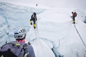 For the first time in my life, I am terrified to fall asleep. Why? Because I’m afraid I’m not going to wake up. Edema is the fatal high-altitude illness where the brain or lungs fill with water, often followed by coma, then death. The only way to treat pulmonary or cerebral edema is to descend, and that is simply not an option for me. I know my body extremely well and I’ve spent numerous nights at 8,000 metres, and this is by far the worst I have ever felt. Weeks of operating at 100 while shooting video for the reality TV series on Mt. Everest has finally caught up to me. My body is exhausted from running ahead of the group trying to capture moments on video without interrupting the flow of the expedition. You see, it’s relatively easy to run ahead of a group trekking at sea level with a camera, but try wearing a spacesuit, moon boots, thick gloves and an oxygen mask and running ahead of a group while ascending the highest mountain on Earth. It’s debilitating. In a world where the rule is to never exceed 60% of your capacity, I’m revving at 120% continuously for eight to 10 hours at a time.