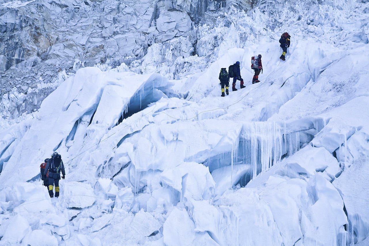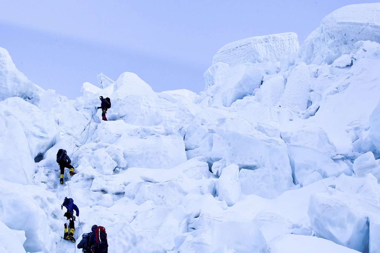 One by one, the climbers make their way toward my lens. First it’s Mohammed, then Raed, then finally Masoud. It finally dawns on me that I am actually standing on the Hillary Step with a Canon 5D in my hand, filming these boys making history. I am completely exposed, and my life is entrusted into a single safety line to brace my 2,400-metre potential fall into the Western CWM. It’s time to move to safety.