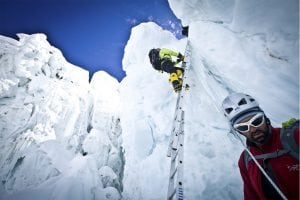Something is wrong. My heart is racing, my palms are sweating, and I’m coughing up green phlegm uncontrollably. You see, last night, my oxygen mask failed at Camp 3, and while all others slept with the gift of artificial O, I froze and drifted in and out of consciousness. This is not the way to begin an attempt on the highest mountain on Earth! Certainly not when you are the only cameraman and are 100 responsible for a $1-million reality television series.