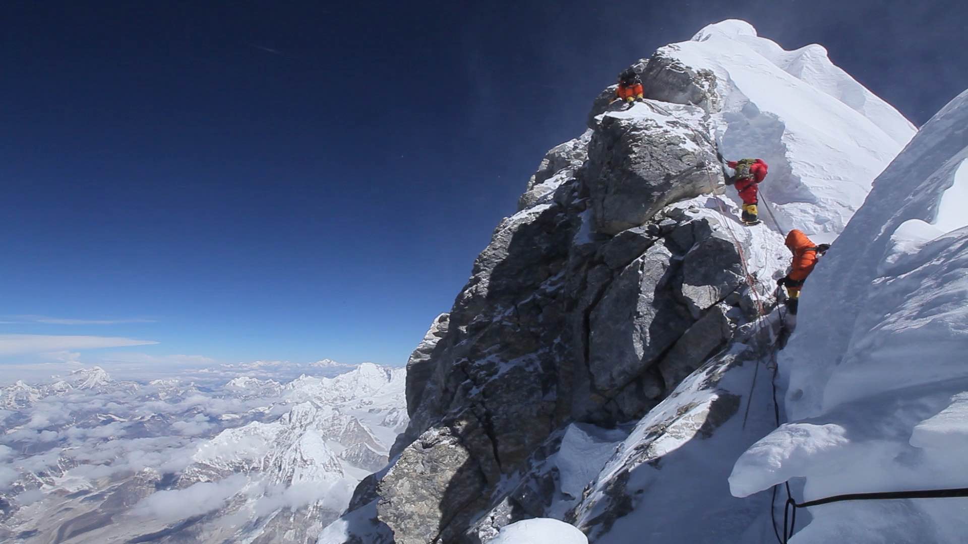 One by one, the climbers make their way toward my lens. First it’s Mohammed, then Raed, then finally Masoud. It finally dawns on me that I am actually standing on the Hillary Step with a Canon 5D in my hand, filming these boys making history. I am completely exposed, and my life is entrusted into a single safety line to brace my 2,400-metre potential fall into the Western CWM. It’s time to move to safety.