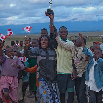 We decided to create an international soccer tournament that was streamed live from the village of Solio, Kenya. 500 students in Canada played a dozen simultaneous soccer games as Canada battled it out vs Kenya in the foothills of Mt. Kenya. Students Skyped, learned about one anothers’ cultures and had an absolutely incredible day.